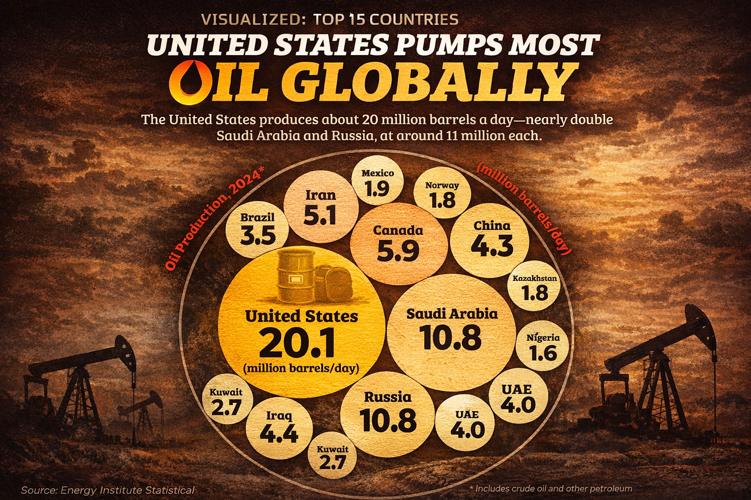 Σε αυτό το σημείο μπαίνει στην εξίσωση ο ρόλος των Ηνωμένων Πολιτειών. Η αμερικανική παραγωγή ξεπερνά τα 20 εκατ. βαρέλια ημερησίως — σχεδόν διπλάσια από τη Σαουδική Αραβία και τη Ρωσία. Ένα στα πέντε βαρέλια που καταναλώνονται παγκοσμίως προέρχεται από τις ΗΠΑ. Πρόκειται για μέγεθος που επηρεάζει άμεσα τον τρόπο με τον οποίο διαμορφώνεται η τιμή στην παγκόσμια αγορά. Οι ΗΠΑ λειτουργούν ως ο παγκόσμιος swing producer, καθορίζουν το marginal barrel και ελέγχουν την ταχύτητα της βραχυκύκλιας προσφοράς.