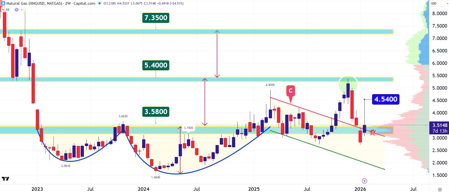 Η αντίδραση του φυσικού αερίου στις ΗΠΑ ήταν βίαιη και πολυπαραγοντική. Μέσα σε τρεις συνεδριάσεις οι τιμές κινήθηκαν ανοδικά κατά περίπου +48%, σε μια αγορά που είχε προηγουμένως φορτωθεί με επιθετικές short θέσεις.