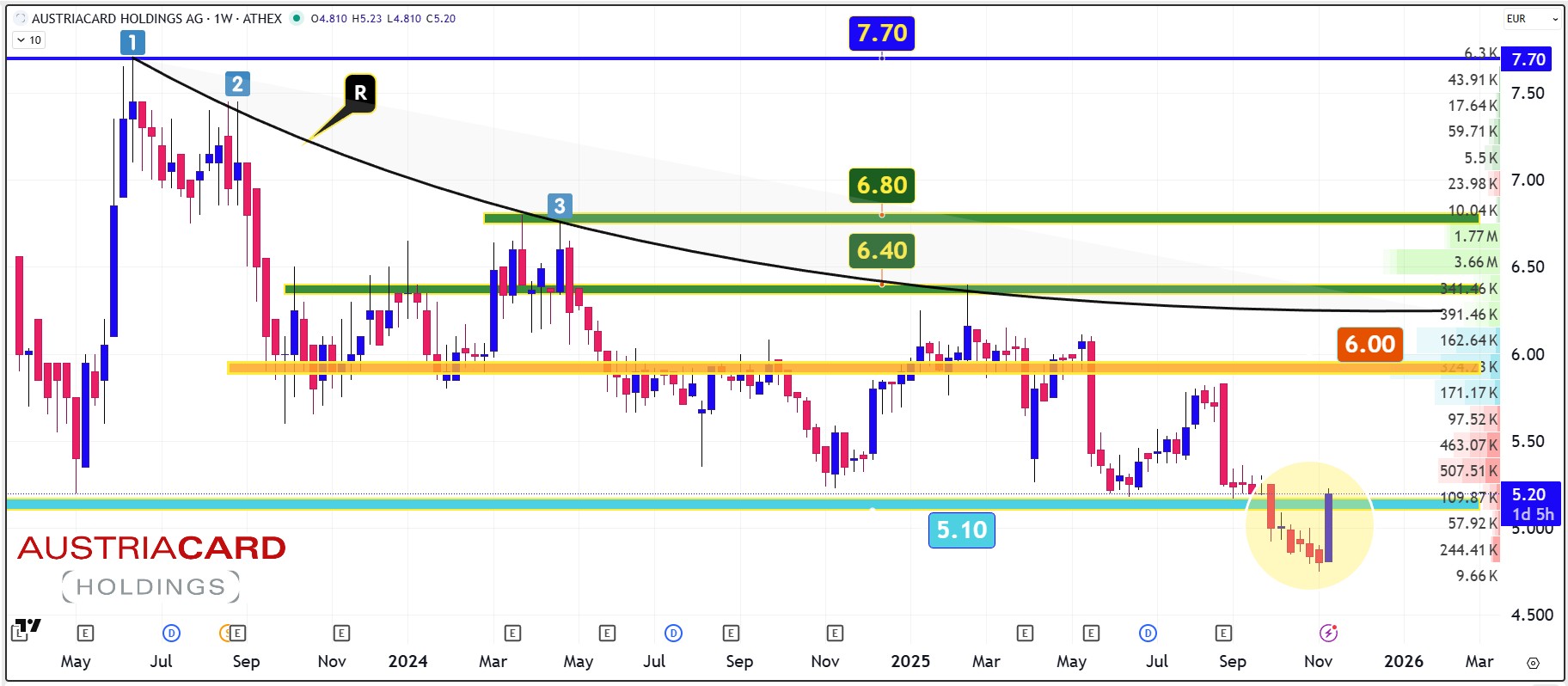 Αυτό το τελευταίο κρατήστε το καλά γιατί μπορεί να φέρει τα κάτω – πάνω στη κερδοφορία και το μέγεθος της Austriacard, ενώ επίσης μπορεί να φέρει στην πόρτα της κανά μαμούθ στρατηγικό αγοραστή και μετά θα ψάχνουμε τη μετοχή πάνω από τα €10.