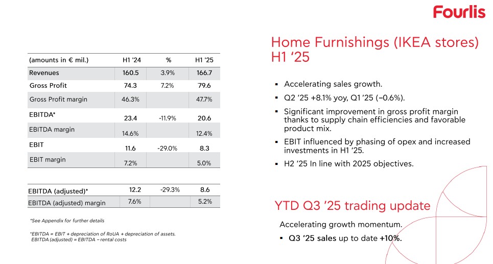 Η Fourlis συνεχίζει να επενδύει σε νέα καταστήματα: άνοιξε το IKEA στο Ηράκλειο το 2025, μετά την Πάτρα το 2024, ενώ προγραμματίζει περαιτέρω ανάπτυξη σε Βουλγαρία και Κύπρο. Ο κλάδος ΙΚΕΑ παραμένει ο σταθερός πυλώνας με υψηλό brand equity, και κάθε νέο κατάστημα λειτουργεί σαν μοχλός μελλοντικής αύξησης πωλήσεων.