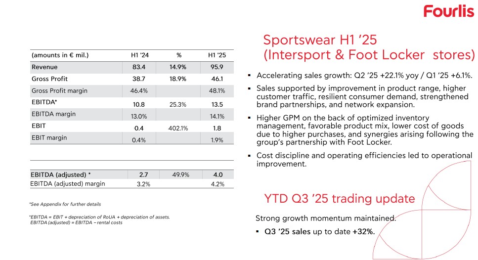 Αυτό είναι μια ξεκάθαρη απόδειξη ότι η Fourlis καταφέρνει να χτίσει μια νέα μηχανή παραγωγής κερδοφορίας, με υψηλά περιθώρια και μακροπρόθεσμη ανθεκτικότητα. Η διεύρυνση του δικτύου INTERSPORT, η επιτυχημένη ενσωμάτωση των δραστηριοτήτων της Foot Locker σε Ελλάδα και Ρουμανία και η ενίσχυση της προϊοντικής γκάμας δημιουργούν ένα μείγμα που “γράφει” στην αγορά.