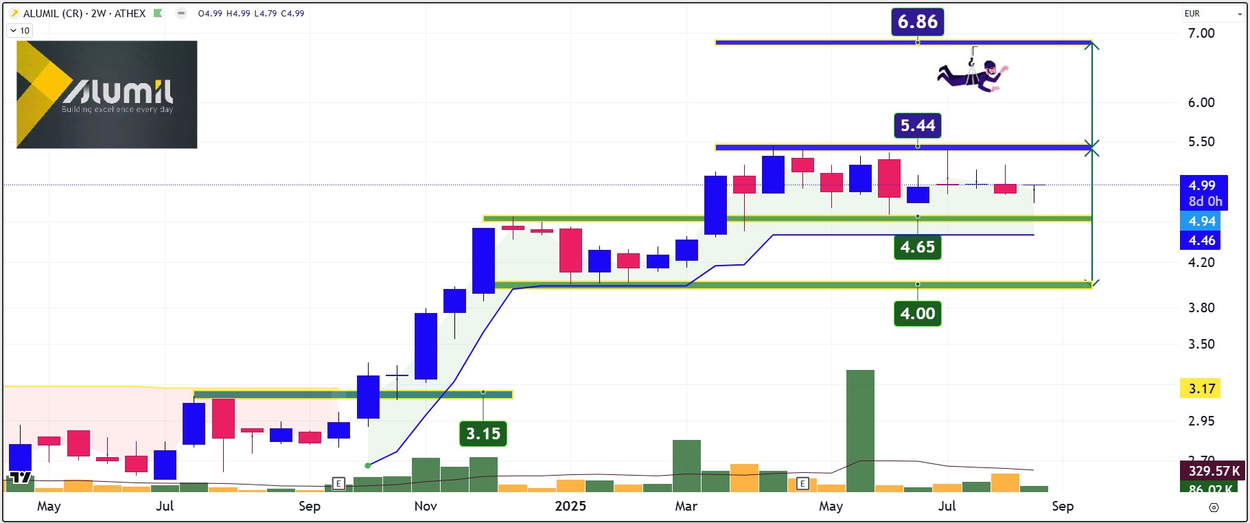 Καταλαβαίνετε φυσικά ότι σε αυτό το πλαίσιο, η Alumil με EV/EBITDA στο 6,56, P/E στο 11,8 και P/BV στο 0,94 φαίνεται ξεκάθαρα σοβαρά υποτιμημένη. Αν προσεγγίσει τους κλαδικούς μέσους όρους, τότε η μετοχή έχει πολύ μεγάλα περιθώρια ανόδου.