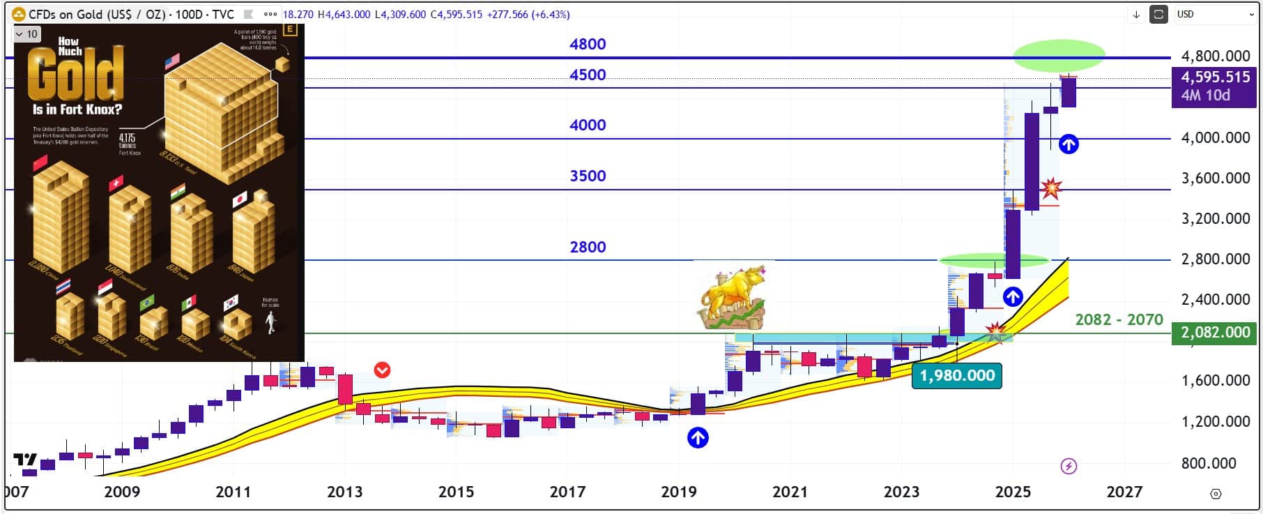 Το συμβόλαιο του χρυσού κατέγραψε νέα ιστορικά υψηλά στα 4.643 δολάρια ανά ουγγιά, ανοίγοντας το δρόμο για τη ζώνη αντίστασης των 4.800 δολαρίων.