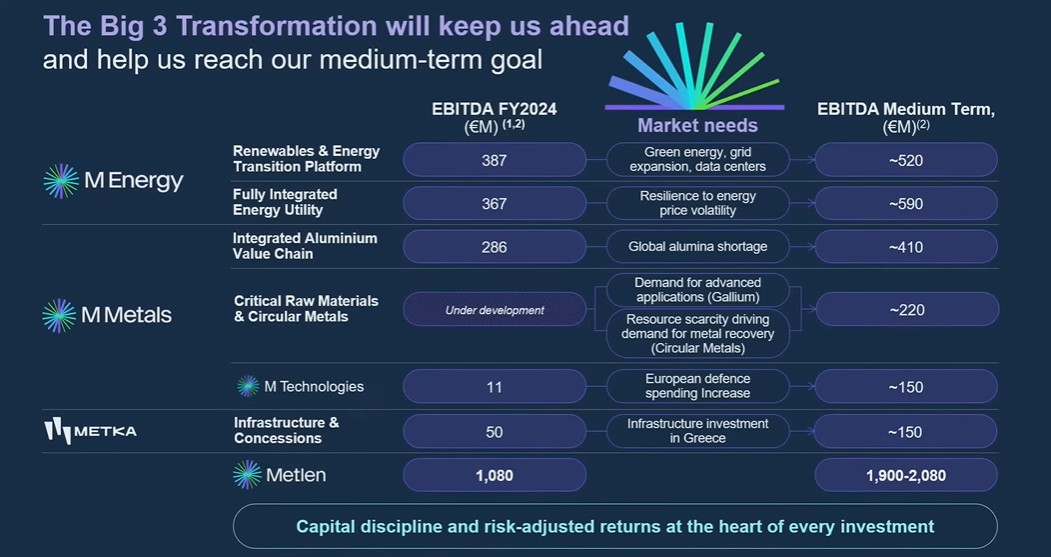 Σύμφωνα με τη διοίκηση, ο τομέας M Technologies στοχεύει σε EBITDA 150 εκατ. ευρώ, γεγονός που τον καθιστά ήδη “mini industrial champion“ με σαφή προοπτική αυτόνομης εισαγωγής στο ΧΑΑ.