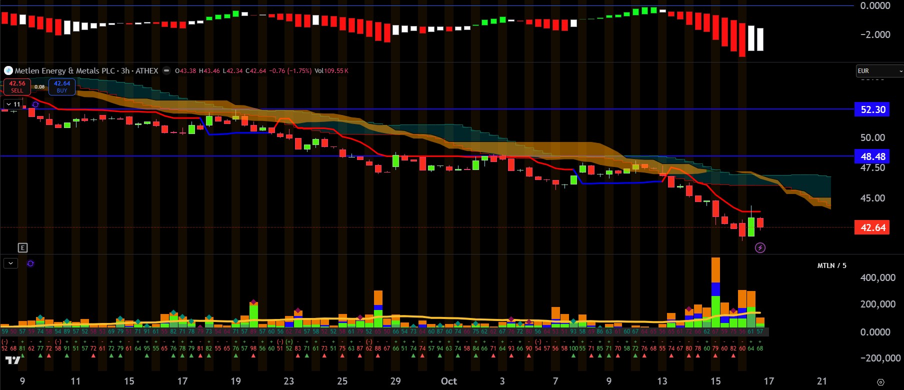Από τις αρχές Σεπτεμβρίου η μετοχή της Metlen έχει υποχωρήσει περίπου 22,5%, διακινώντας 9,7 εκατομμύρια μετοχές, χωρίς κανένα θεμελιώδες γεγονός που να δικαιολογεί τέτοια διόρθωση. Καμία αλλαγή σε προοπτικές, κανένα πλήγμα σε ροές, καμία στρατηγική ανατροπή. Μόνο φήμες και “ψίθυροι”, διοχετευμένοι μεθοδικά σε μια περίοδο που η αγορά προσπαθεί να κατανοήσει τις τεχνικές ισορροπίες της εισαγωγής στο Λονδίνο και της μετάβασης στις αναπτυγμένες αγορές από τις αναδυόμενες μέσω του επερχόμενου MSCI Rebalancing της 5ης Νοεμβρίου.