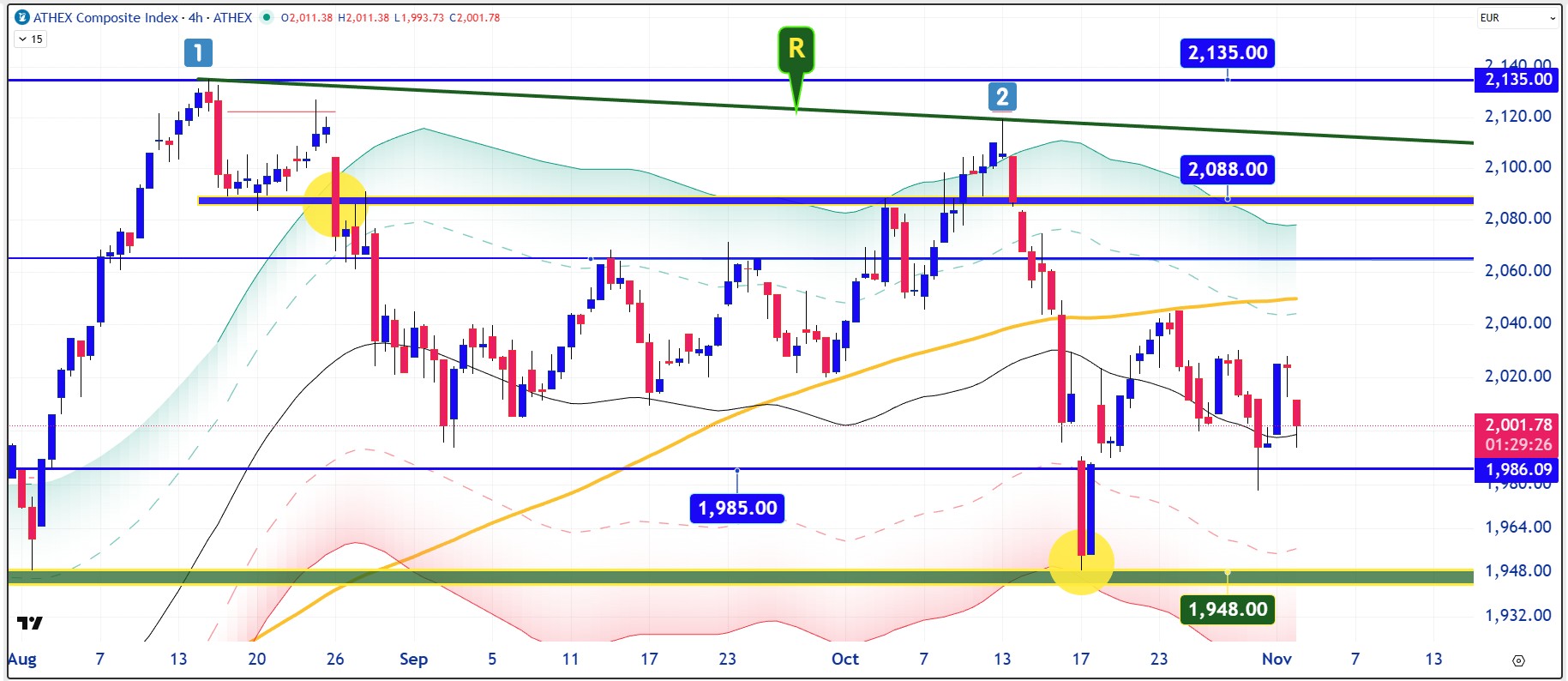 Τέλος στο “και τώρα;” το βασικό σενάριο είναι ότι όσο οι 1.985 μονάδες κρατάνε, η αγορά θα “χτίζει” αγοραστική βάση για να ρίξει τροχιοδεικτικό στις 2.065 και δεύτερη βολή στις 2.088 μονάδες. Εκεί, αν μπουν ξανά στο παιχνίδι οι τέσσερις τραπεζικές κυρίες και πάρουν τη σκυτάλη της αντεπίθεσης οι Metlen, Coca-Cola και ΟΠΑΠ, τότε ο δρόμος ανοίγει διάπλατα για ένα year-end rally με προορισμό τις 2.200 μονάδες.