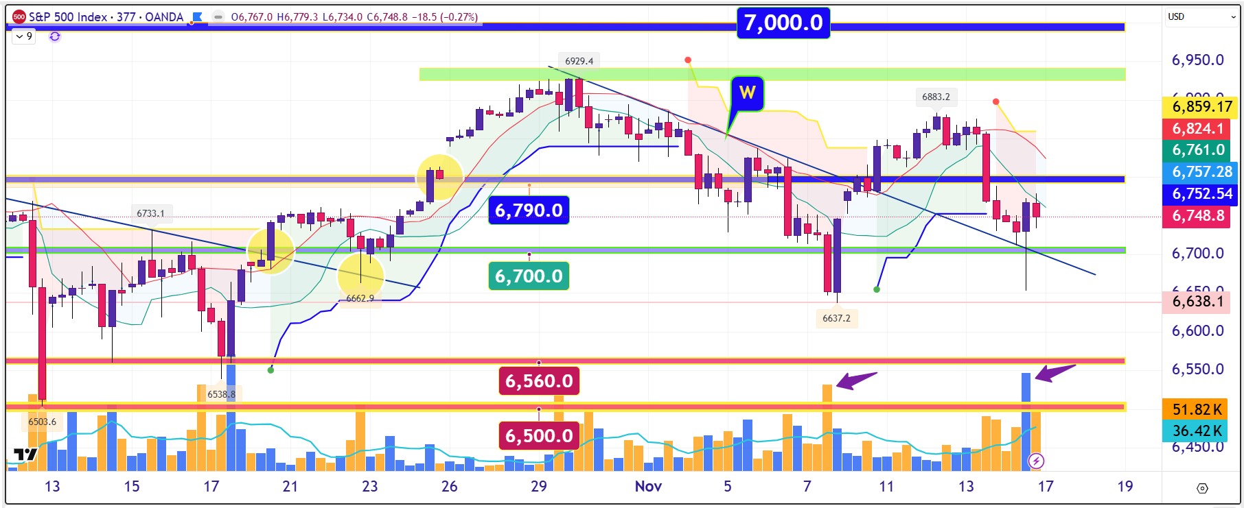 Για τους μακροπρόθεσμους επενδυτές, το αφήγημα παραμένει ότι ο S&P 500 μπορεί να δει τις 7.000 μονάδες μέσα στον επόμενο ανοδικό κύκλο. Τώρα για τους βραχυπρόθεσμους η προσοχή τους θα πρέπει να είναι στραμμένη στη καθοδική διάσπαση των 6.630 με 6.580 μονάδων.