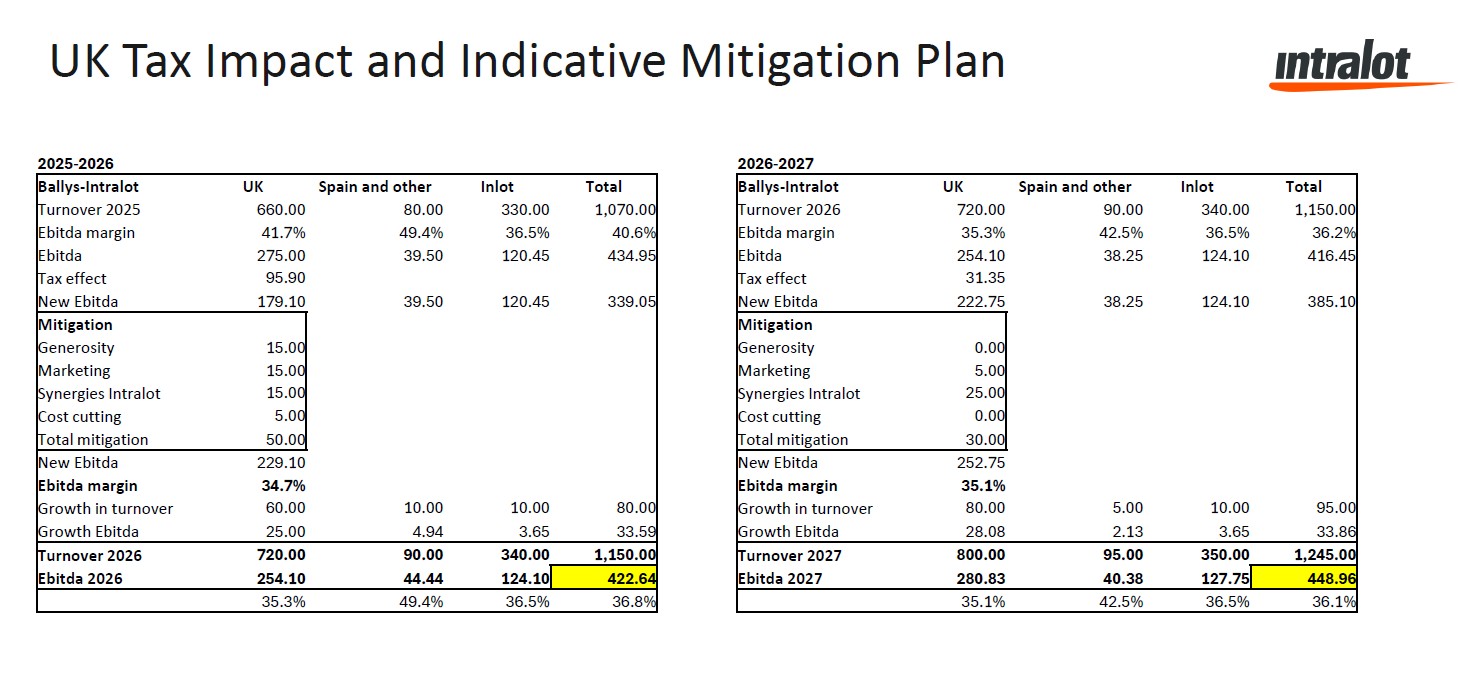 Μέχρι πριν την ανακοίνωση των UK tax η διοίκηση περίμενε για το 2027 EBITDA κερδοφορία της τάξης των 490 εκατ. ευρώ. Μετά την ανακοίνωση η διοίκηση “ανασκεύασε” το guidance σε 449 εκατ. ευρώ EBITDA. Κοινώς δηλαδή η διαφορά είναι της τάξης των 41 εκατ. ευρώ. Η μετοχή λοιπόν λόγω της είδησης έφυγε από τα 1,124 ευρώ και έφτασε τα 0,88 ευρώ χάνοντας έως και 456 εκατ. ευρώ από τη κεφαλαιοποίησή της.